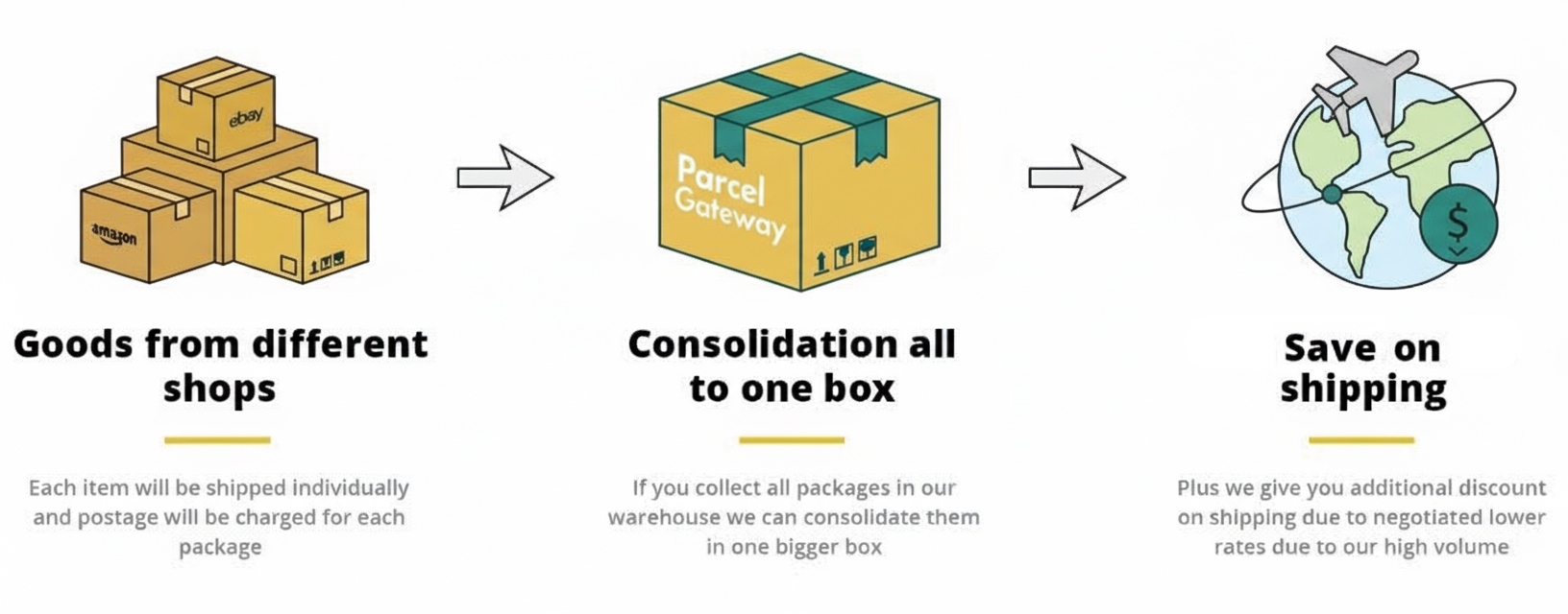 Shipping costs depend on the weight, size, and destination country. We also offer package consolidation to help you save money by combining multiple parcels into one shipment.